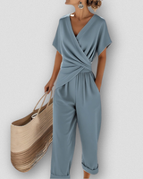 Le Fiametta – Combinaison élégante et décontractée est une pièce chic et fluide qui allie parfaitement sophistication et décontraction. Son haut cache-cœur, sa taille marquée et sa coupe large mettent en valeur la silhouette tout en sublimant chacun de vos mouvements.