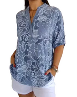 Sa coupe décontractée et son tissu léger assurent une sensation agréable tout au long de la journée, tandis que le col en V et les manches roulées ajoutent une touche d'élégance à votre look.