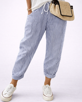 Apportez une touche d'élégance décontractée à votre garde-robe avec le pantalon rayé Amara.Conçu pour allier style et confort. Idéal pour un usage quotidien ou des occasions sociales, ce pantalon au design simple et chic se marie facilement avec une variété de hauts et de chaussures.Doté d'une taille élastiquée avec cordons de serrage réglables, il offre une coupe ample qui flatte toutes les silhouettes et assure un confort optimal toute la journée.
