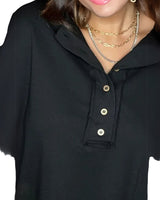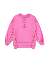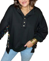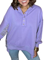 Avec ses touches scintillantes et son col à demi-boutonnage, ce sweat-shirt rehausse sans effort n’importe quelle tenue décontractée, transformant un look simple en une pièce phare.