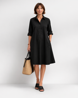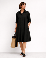 Son devant boutonné et ses manches retroussées lui confèrent un style soigné tout en restant confortable et facile à porter. Une robe intemporelle qui s’adapte à toutes les occasions.