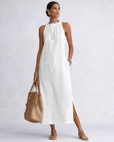 Jimena est la robe idéale lorsque vous souhaitez vous sentir fraîche, confortable et élégante sans effort. Sa coupe fluide et son design épuré créent une allure naturelle et flatteuse, parfaite aussi bien pour une promenade estivale que pour un déjeuner élégant.