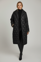 ÉLODIE QUILTED – Manteau Long Matelassé avec Doublure Léopard