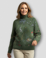 SYLVIE FOREST – Pull Col Roulé Doux aux Motifs de Forêt